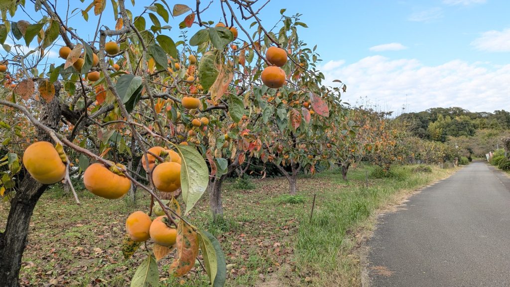 色づき始めた岡上の里で秋を感じていただきながら、アグ里やまかげでは柿もぎとりを楽しんでいだける季節となります。
